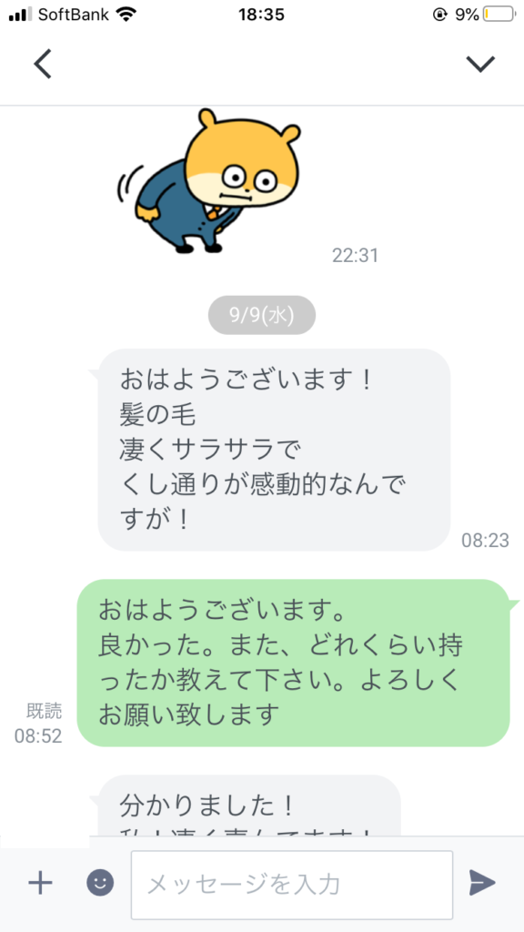 実際美髪システムを体験していただいた方とのLINEでのやり取り