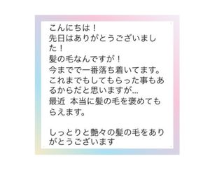 - 40代50代の加齢毛の方にも向いています。(ペッタンコになりづらく髪の状態に合わせた薬剤設定を行うため)